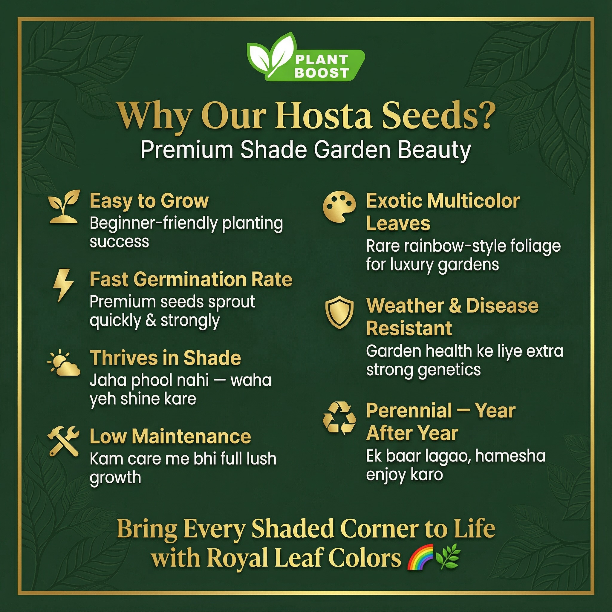 Known for their hardiness and adaptability, Hostas thrive in partial to full shade, making them an ideal plant for shaded gardens, patios, and walkways. Whether you’re looking for lush green, variegated, or even blue-tinted foliage, these premium-quality seeds will bring a touch of elegance to your landscape.